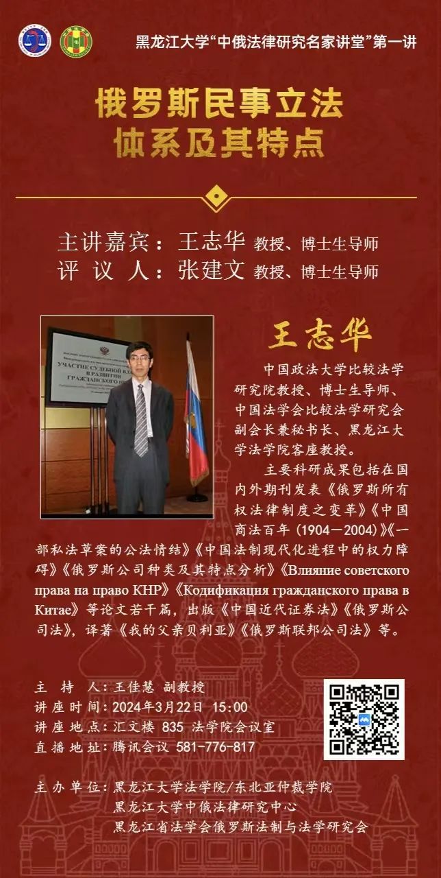 av麻豆 “中俄法律研究名家讲堂”系列讲座预告