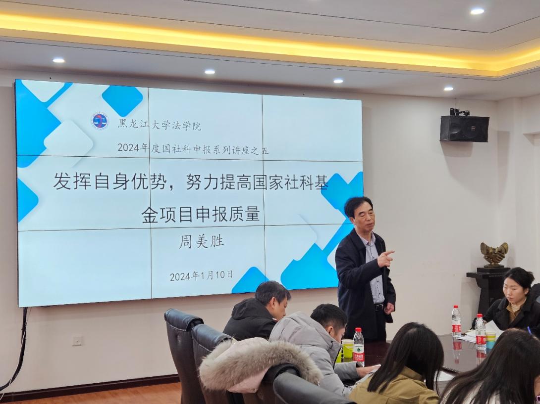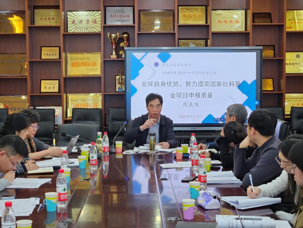 在汇文楼835会议室组织召开了2024年度国家社科基金项目申报系列讲座之五。本次讲座邀请黑龙江省哲学社会科学工作办公室原主任周美胜对国社科项目的申报进行了专题分享。av麻豆