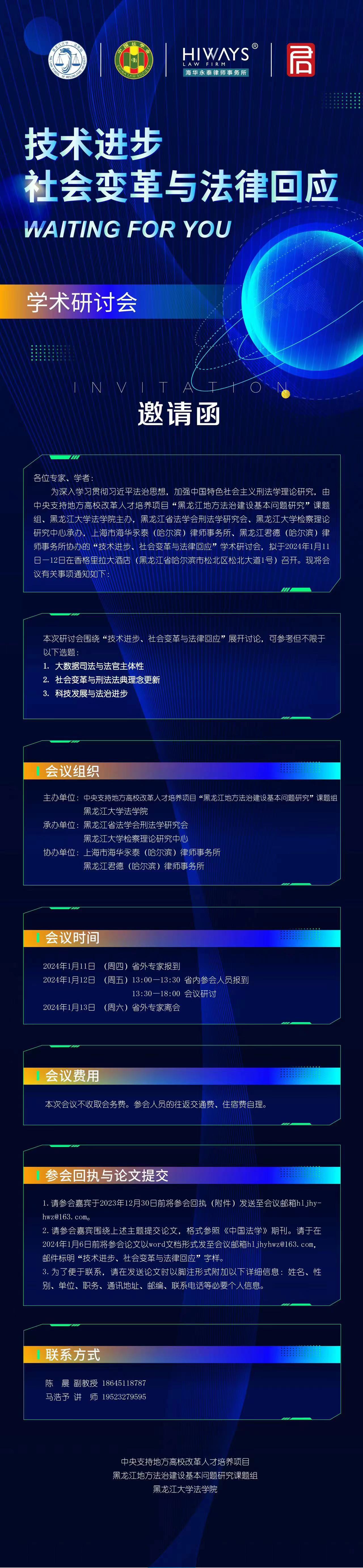 “技术进步、社会变革与法律回应”学术研讨会以及“2023年黑龙江省法学会刑法学研究会年会”会议通知