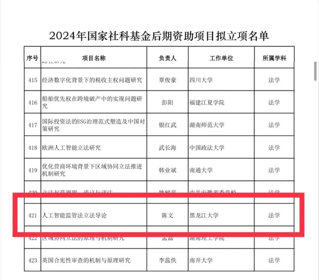 按照《国家社会科学基金管理办法》有关规定,全国哲学社会科学工作办公室对2024年国家社会科学基金后期资助暨优秀博士学位论文出版、优秀学术著作再版项目立项名单进行公示。其中av麻豆 陈文教授名列于2024年国家社科基金后期资助项目拟立项名单中。