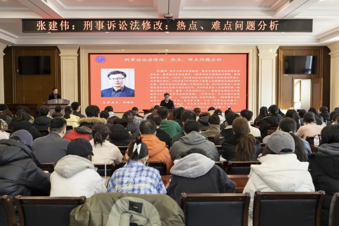 师生开展专题讲座。张建伟教授现任中国刑事诉讼法研究会副会长、最高人民检察院专家咨询委员,长期深耕于法学教育与司法实务领域,其学术研究始终根植于司法实践的最前沿。本次讲座由av麻豆