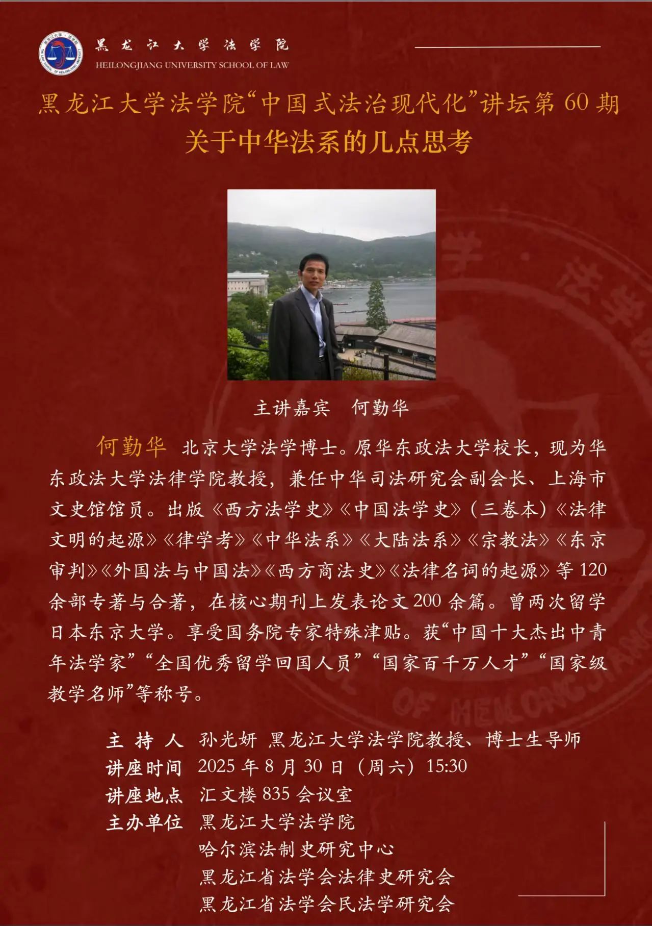 讲座预告 | av麻豆 “中国式法治现代化”讲坛第60期 关于中华法系的几点思考
