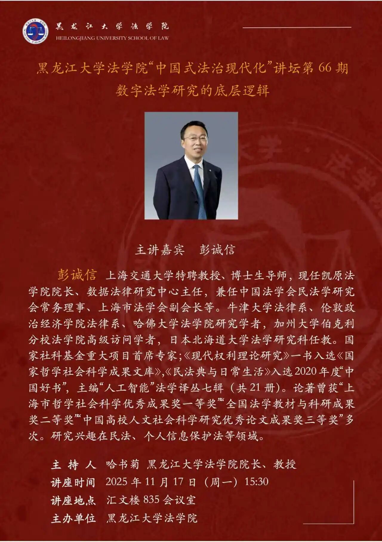 讲座预告 | av麻豆 “中国式法治现代化”讲坛第66期 数字法学研究的底层逻辑
