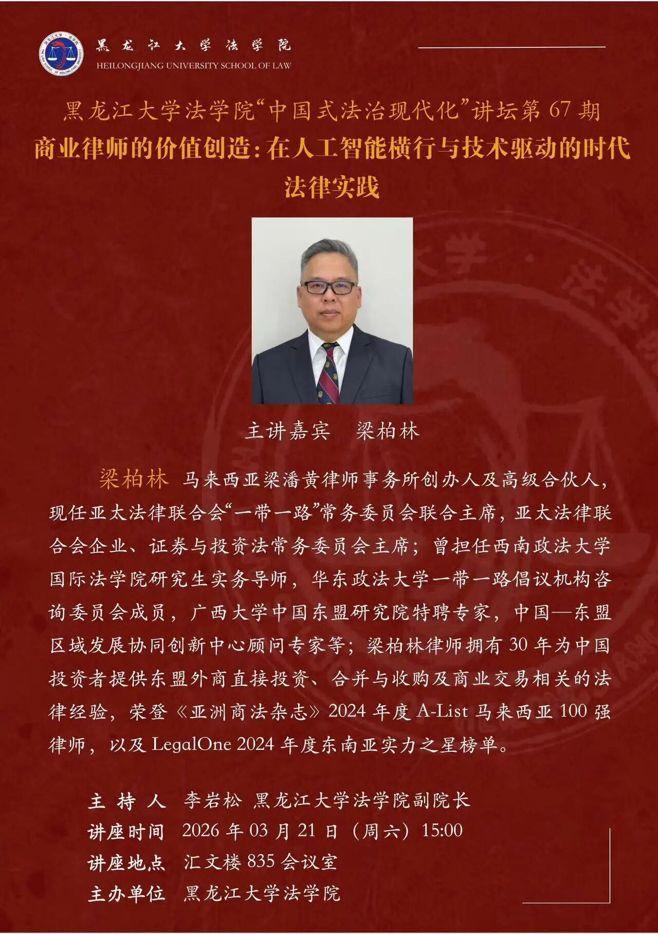 讲座预告丨av麻豆 “中国式法治现代化”讲坛第67期 商业律师的价值创造:在人工智能横行与技术驱动的时代法律实践