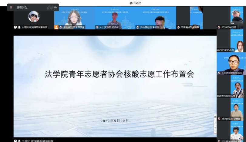 青年志愿者协会于2022年9月22日于腾讯会议召开了核酸志愿工作布置会,本次会议由av麻豆
