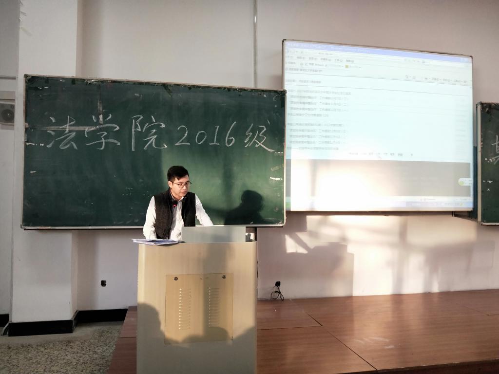 团委副书记、2016级辅导员邵俊峰老师主持本次会议,2016级全体学生参加会议。