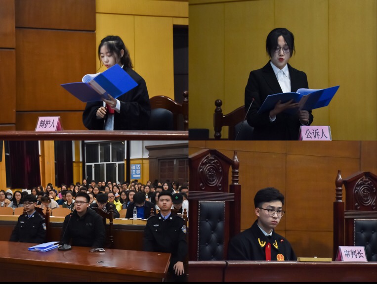 本次活动分案件情景剧和庭审两个环节。前期准备充分,现场反响热烈。案件情景剧环节中,演员们以精湛的演技和极强的舞台表现力还原了本次展演活动所选案例的大致脉络,使同学们对案例有了较为清晰的认识。庭审环节中,审判人员、公诉人、辩护人将真实的刑事案件庭审搬上舞台,让同学们对庭审的具体流程有了较为清晰的认识,为广大学子普及了法律专业知识,提高了专业能力。
