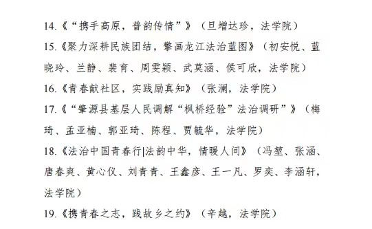 《“携手高原,普韵传情”》 《聚力深耕民族团结,擎画龙江法治蓝图》 《青春献社区,实践励真知》 《“肇源县基层人民调解“枫桥经验”法治调研”》 《法治中国青春行|法韵中华,情暖人间》《携青春之志,践故乡之约》共6篇报告荣获“2024年av麻豆