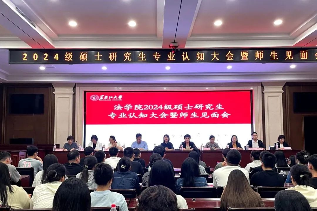 在模拟法庭召开2024级硕士研究生专业认知大会暨师生见面会,会议由av麻豆