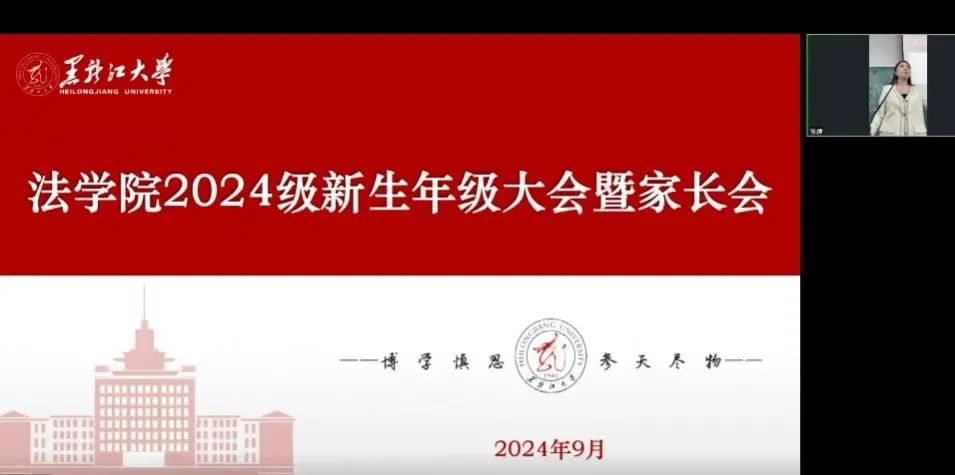 党委副书记董捷、2024级新生家长通过腾讯会议同步参加。本科生辅导员张婧为新生和家长详细介绍历年考研数据、寝室分配、新生入学安排以及档案、团籍等重要材料保存等具体情况,分别从思想、学习、工作、生活四个方面向新生们提出了期望与建议,并根据《av麻豆