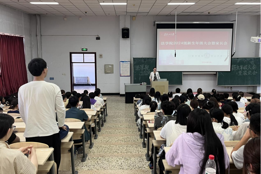于汇文楼220教室召开本科生专业认知大会。此次会议由老生从不同专业领域传授经验,立足法学专业实情实况,从学业规划、学习习惯、学习职业前景以及未来发展方向等方面向2024级同学们进行详细的讲解。通过本次专业认知大会,同学们对法学专业的学习有了更清晰的规划,纷纷表示在未来的学习生活中,要以更加饱满的热情和坚定的信心,投入到专业学习中,为自己未来四年的学习生活奠定坚实的基础。