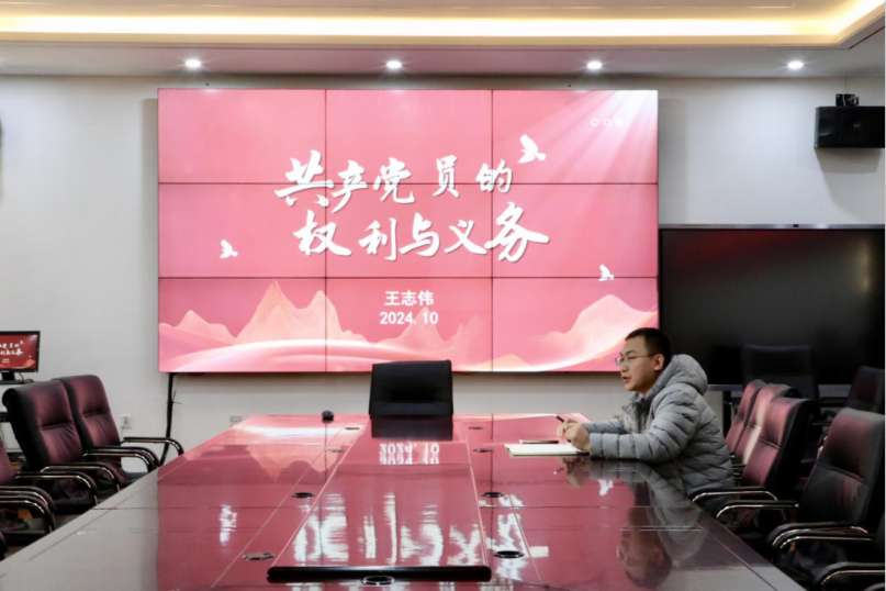 王志伟以“共产党员的权利与义务”为题,带领学员们深入学习共产党员的八项权利、八项义务,明确党员对党应当承担的责任以及党员应当享受的利益和允许行使的权利,促使学生党员们明确自身责任,提高自身素质,进一步发挥学生党员在学生群体中的先锋模范作用。