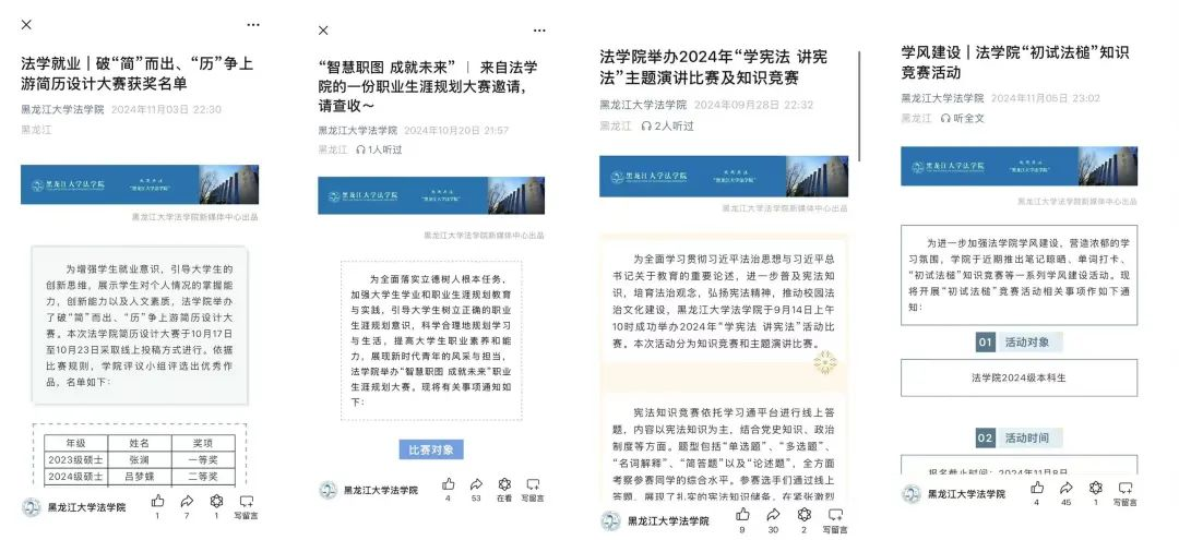 "以赛促学"的原则,通过参与各类竞赛活动,有效激发了自身的学习热情。大一新生积极参与“学宪法 讲宪法”活动比赛,深入了解宪法知识,提升了学法的积极性;踊跃参加“初试法槌”知识竞赛,巩固基础知识,增强法律观念,提升法律素养;勇敢尝试职业规划大赛和简历设计大赛,明确职业目标,提高就业竞争力。此外,大一新生还主动参与笔记晾晒、单词打卡等活动,通过持续的打卡机制,提高了自身学习的自觉性和主动性。