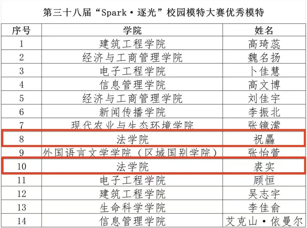 学子凭借扎实的台风功底、独特的审美表达与饱满的青春活力,在众多参赛者中脱颖而出,斩获佳绩。男子组蒋卓希荣获季军;女子组王文君荣获十佳模特奖,祝厵、裘实荣获“优秀模特”荣誉称号。