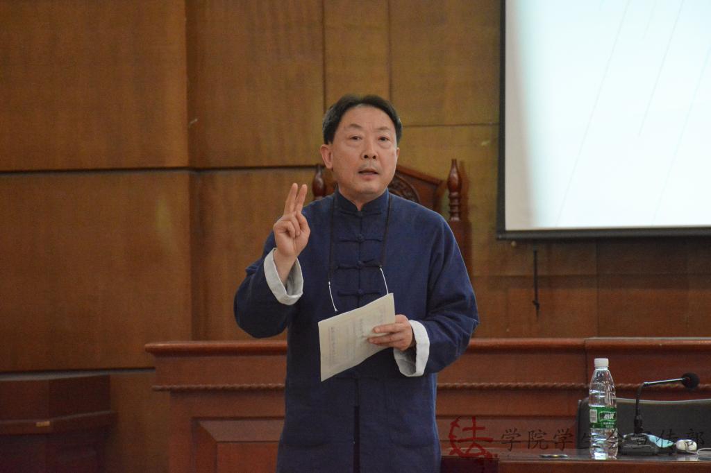 郑教授的报告题目是律师执业的基本素养。他从律师价值、形象、能力三方面对广大学生提出要求。讲座过程中,郑教授幽默诙谐的语言风格、丰富多彩的人生阅历给大家留下了深刻的印象。在讲座的最后,郑教授还告诫广大学生,要有清晰的目标、善于积累、善于调整心态、勤奋精进,这样才能度过一段充实有意义的大学时光,