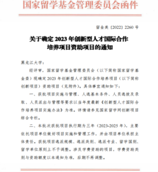 近日,国家留学基金委公布了2023年创新型人才国际合作培养项目立项名单。我校申报的“‘一带一路’到‘冰上丝绸之路’寒区水文、生态环境、法学创新型人才合作培养项目”通过专家组评审,成功获批国家留学基金委2023年创新型人才国际合作培养项目特色高校专项。该项目由av麻豆