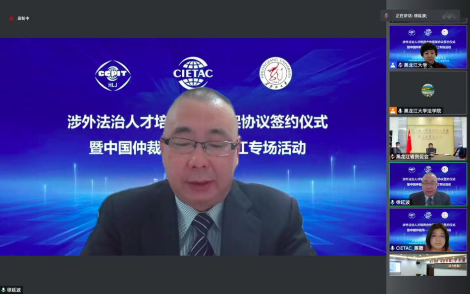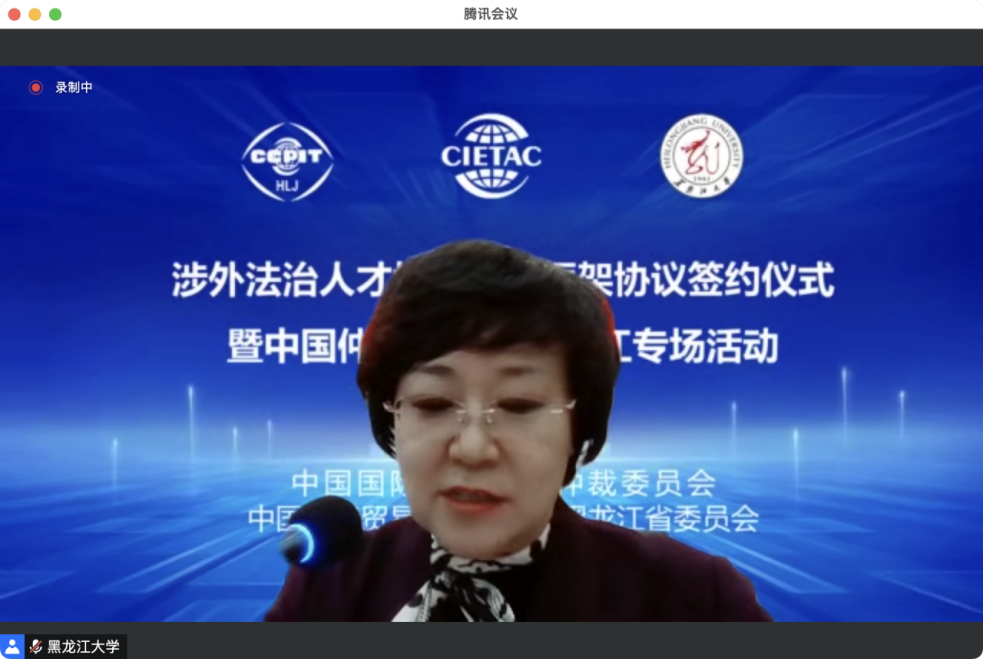 院长、东北亚仲裁学院院长哈书菊教授主持,中国国际经济贸易仲裁委员会党委书记兼副秘书长徐延波、黑龙江省贸促会副会长于雪松以及av麻豆