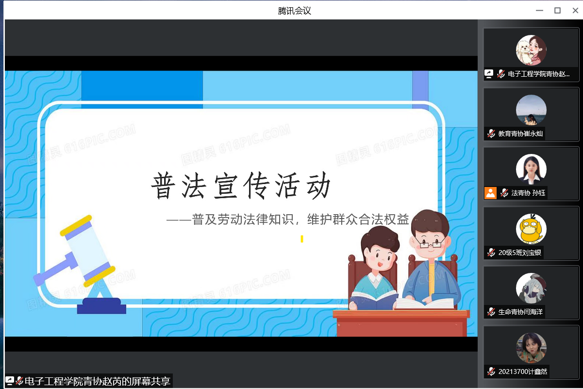 青年志愿者协会主办、五院联合共同举办的线上云宣讲“普及劳动法律知识,维护群众合法权益”普法宣传活动取得了圆满成功。
