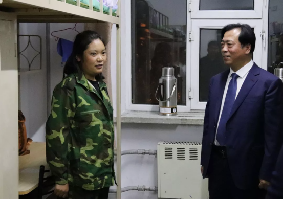 C区10栋学生公寓。走访过程中,领导老师们亲切地和同学们进行交谈,询问同学们的家庭情况,以及对学校生活是否习惯。同时,勉励同学们不负家长的嘱托,自觉养成良好的学习、生活习惯,尽快调整好状态,为即将到来的军训做好充分的准备,并把军训中磨练的意志和品质保持和发扬到之后的学习生活中去。