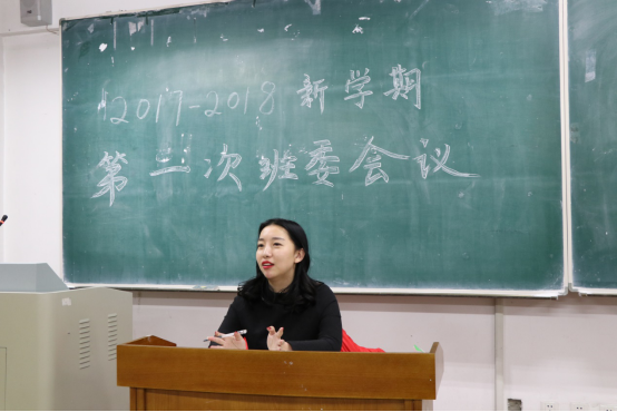 会议伊始,杨译迪老师指出:在学习方面,班委应当是班级的模范,班委在做好学生工作的同时,更要重视学习。接着,杨译迪老师重申了上课纪律问题和寝室卫生问题,表示学生干部应该在各个方面都起到带头示范作用。最后,杨译迪老师指出班委与普通同学之间要互相理解,包容别人出现的错误。