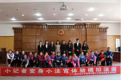 为响应国家“七五普法”号召,扎实推进“两学一做”学习教育常态化制度化,将法律知识学以致用,帮助未成年人树立法律意识,2018年3月24 日上午9时,“小记者变身小法官体验模拟法庭暨中国人民大学哈尔滨少年新闻学院小记者走进黑大av麻豆