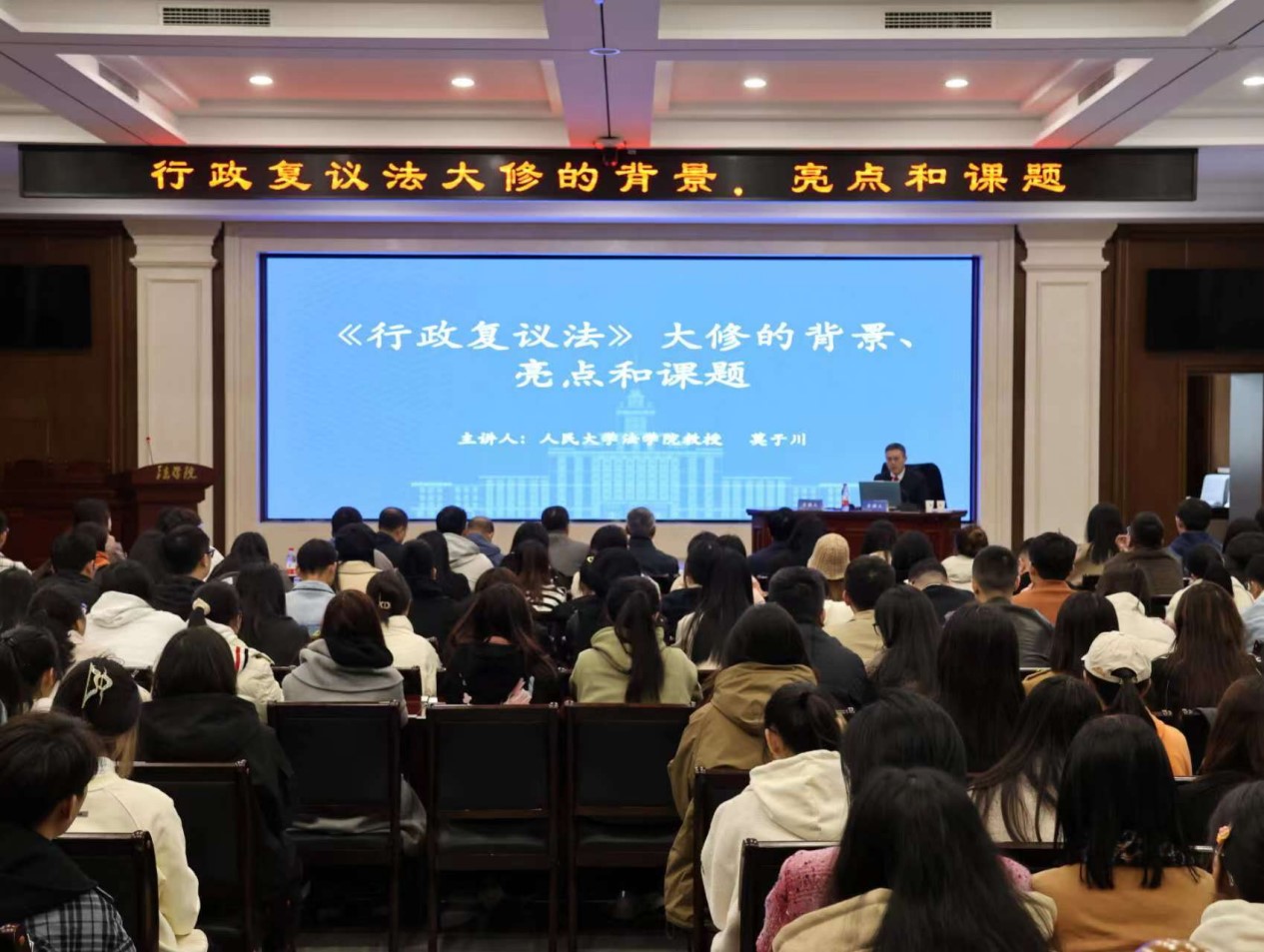 博士生导师莫于川教授在模拟法庭,以“《行政复议法》大修的背景、亮点和课题”为题,进行了一场深刻又生动的学术讲座。