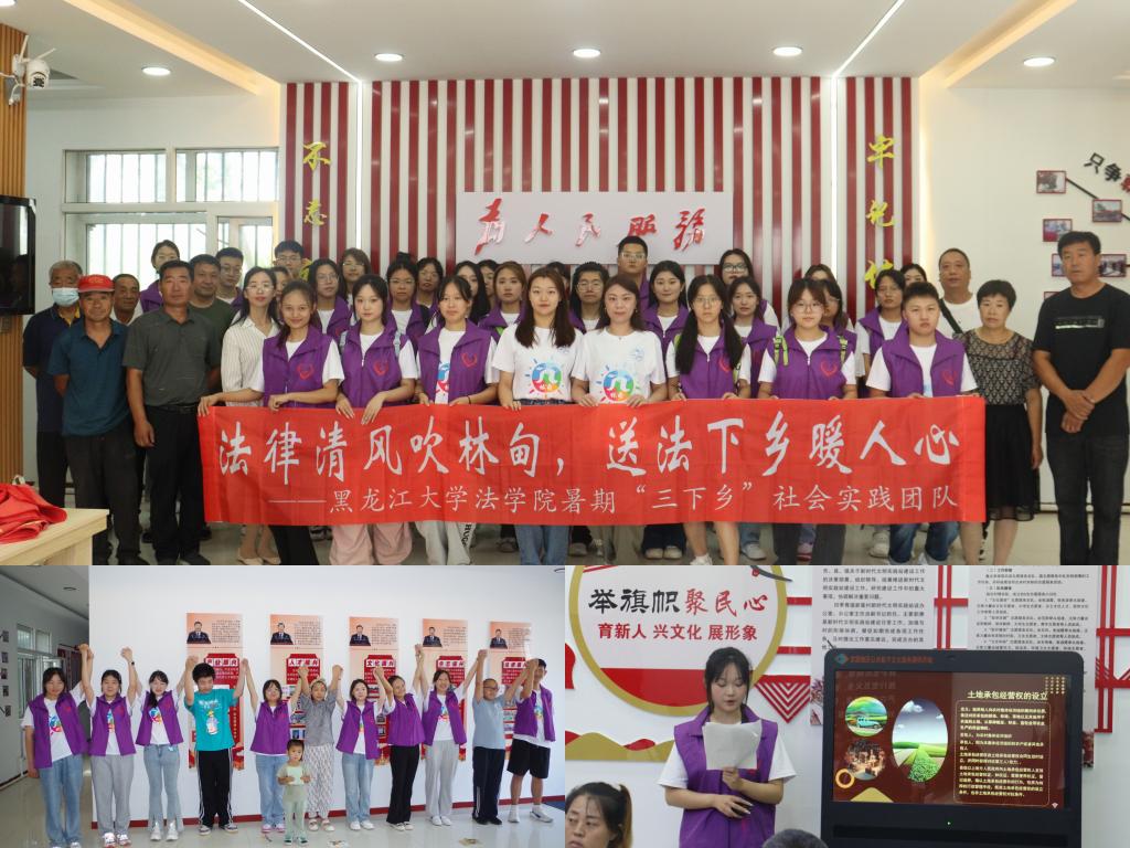 本次“三下乡”活动以“民族团结青春行,普法奋进新时代”为主题,围绕民族团结进步创建、理论普及宣讲、乡村民情调研、红色基因传承、法律咨询援助等5个方面深入民族村开展社会实践。实践团队以铸牢中华民族共同体意识为主线,依托法学专业特色,以普法“五进”为载体,组建了由专业教师指导、以学生为主体共计30人的实践团队,走进大庆市林甸县四季青镇、林甸县天星广场、林甸县西南社区、林甸县敬老院、林甸县企业,采取“零距离”“面对面”“点对点”的形式,推动此次“三下乡”社会实践的专业化、多元化和精细化发展。