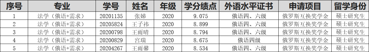 按照《2024年俄罗斯互换奖学金(中俄政府奖学金)项目遴选工作的通知》要求,根据项目具体介绍以及申请条件要求,经学生自愿申请,学院审核,拟推荐av麻豆 以下5名学生申报此项目。现将推荐结果公示如下,公示期为2023年11月3日-7日。对推荐名单若有异议请联系张老师,86604985。