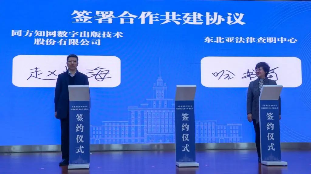 仪式上,于文秀代表学校与省司法厅、省高级人民法院签署了东北亚法律查明中心共建协议,与省司法厅签署了调解研究中心共建协议。
