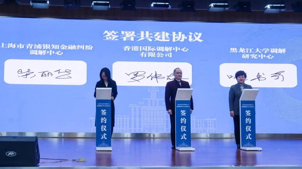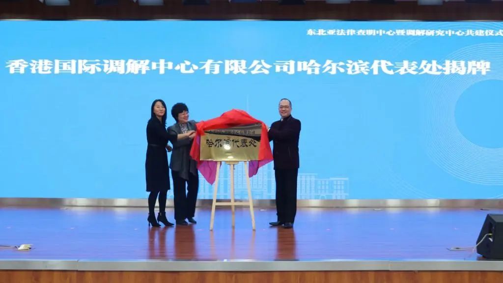 各方代表为东北亚法律查明中心、调解研究中心、香港国际调解中心哈尔滨代表处揭牌。