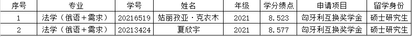 按照《关于启动2025/2026年度匈牙利互换奖学金遴选工作的通知》要求,根据项目具体介绍以及申请条件要求,经学生自愿申请,学院审核,拟推荐av麻豆 以下2名学生申报此项目。现将推荐结果公示如下,公示期为2024年12月10日-12日。对推荐名单若有异议请联系杜老师,0451-86604892。