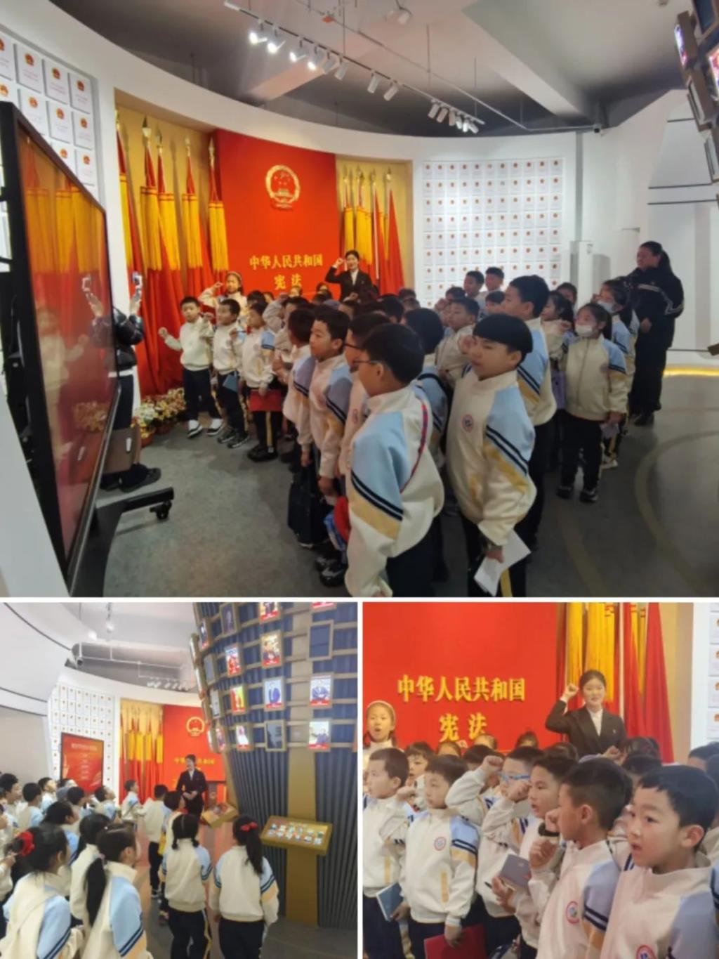 在实践基地宪法仪式厅,同学们身着整齐的校服,面向鲜艳的国旗,高举右拳,庄严宣誓:“忠于中华人民共和国宪法,维护宪法权威,履行法定职责……”铿锵有力的誓言在宣誓厅回荡。这一仪式不仅让同学们感受到宪法的神圣,更在幼小的心灵中播下了尊崇宪法、遵守法律的种子。“当我念出誓词时,突然觉得自己长大了,要做一个守法的公民。”一位参与宣誓的同学激动地说。