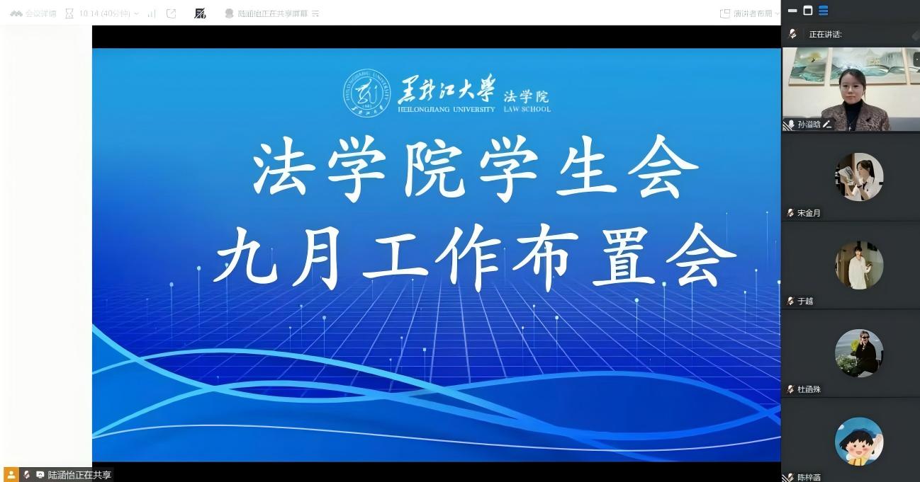 学生会召开九月工作布置会。学生会主席团、部长团及全体干事参会,会议由执行主席杜函殊主持。